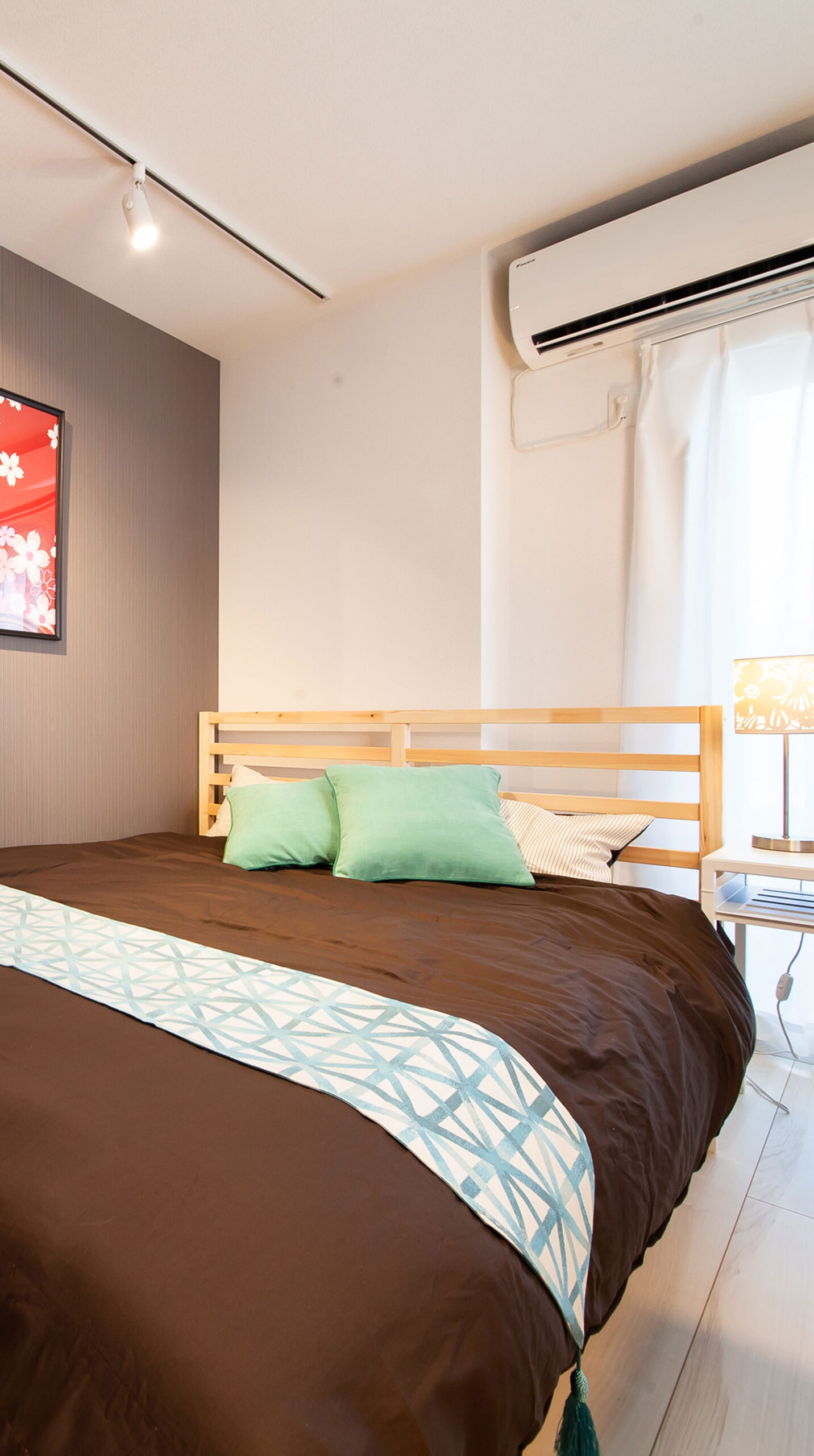 ダブルベッドとお布団を1組ご用意しておりますので、お一人様のご利用からご家族などでも快適にお泊まりいただけます。